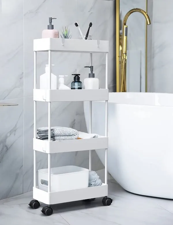 For example, this kind of metal trolley rack is flexible, delicate, and has a large storage capacity. It can be used for bulk bathroom storage ideas in the bathroom, living room, and bedroom, and it can be used for multiple purposes.