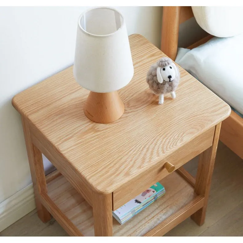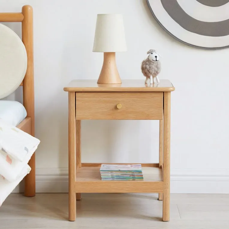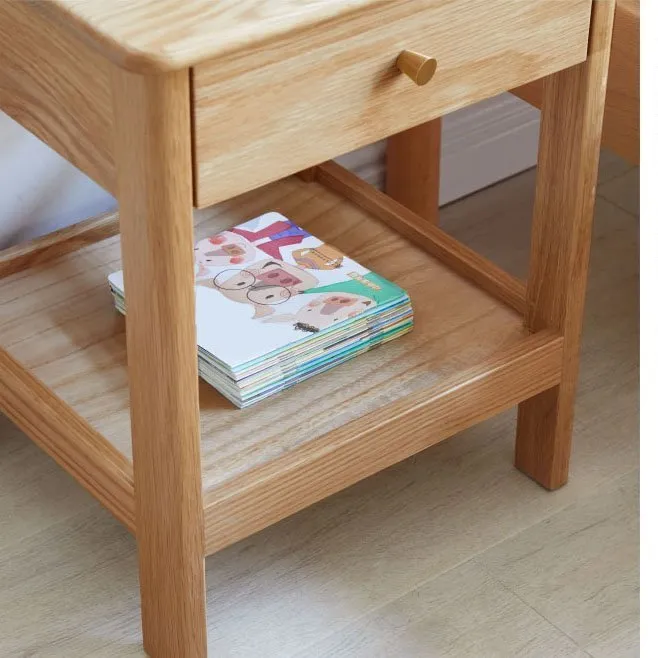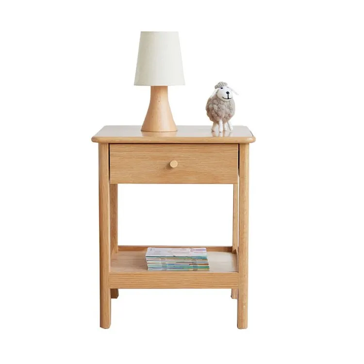 Wholesale Natural Bedroom 2 Tier Bedside Table with Drawer and Storage Shelf Manufacturer