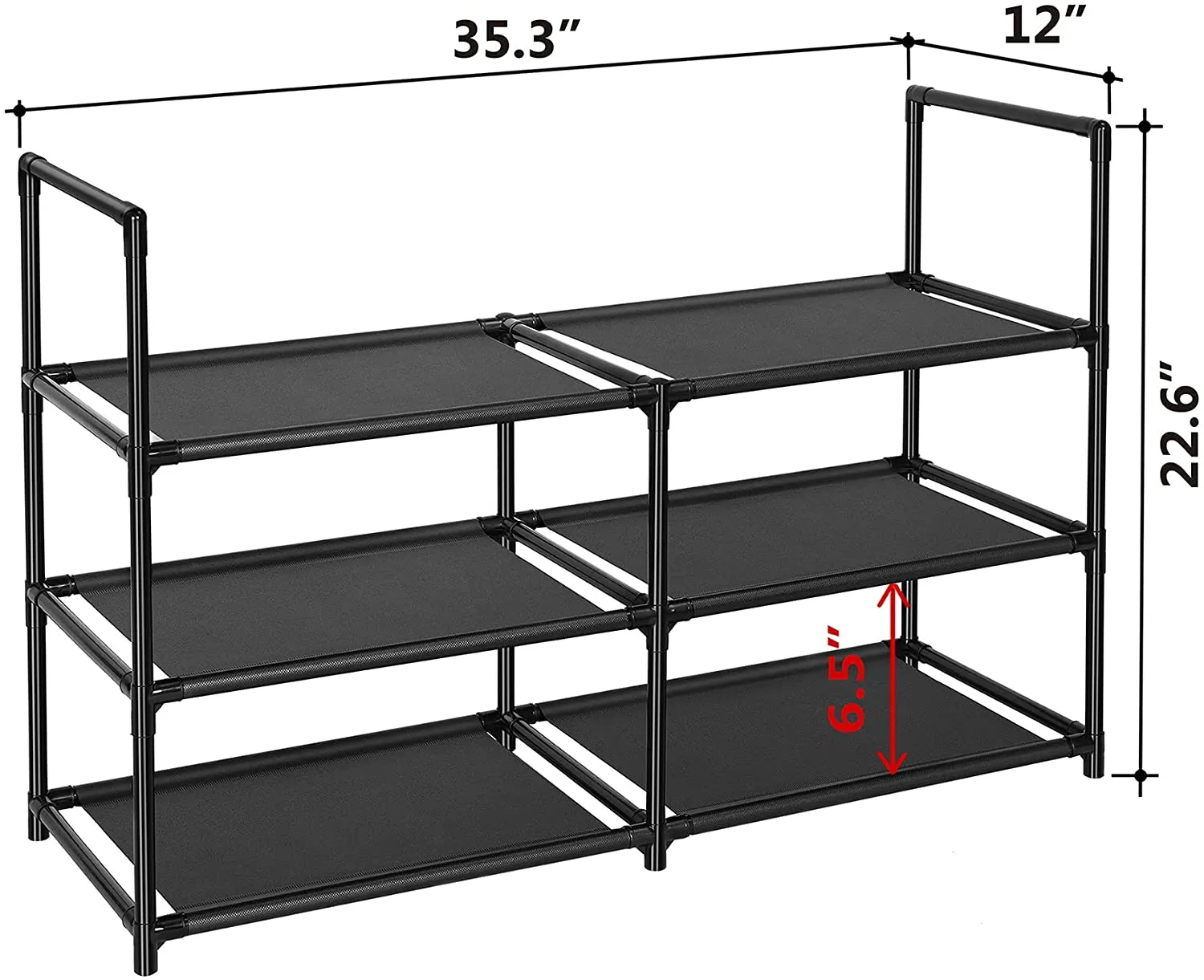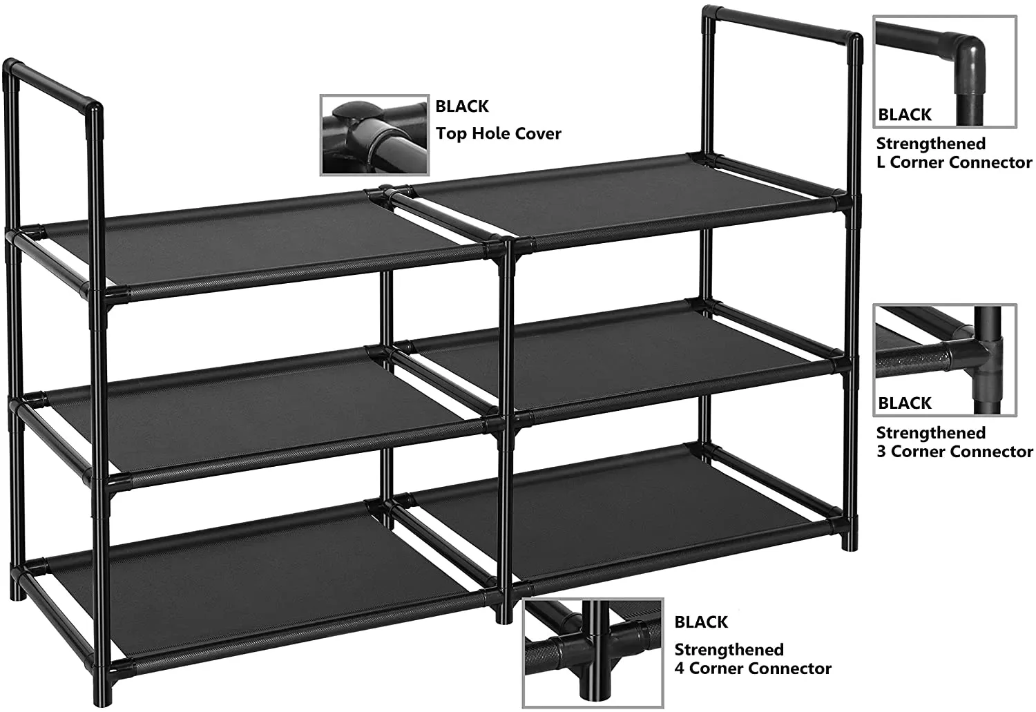 3 Tiers Shoe Rack is made of Durable waterproof non-woven fabric tiers ,the reliable plastic connetors and thick metal pipe makes it easy to be assembled with out any tools.