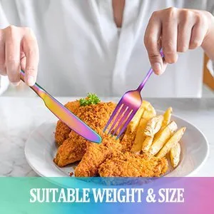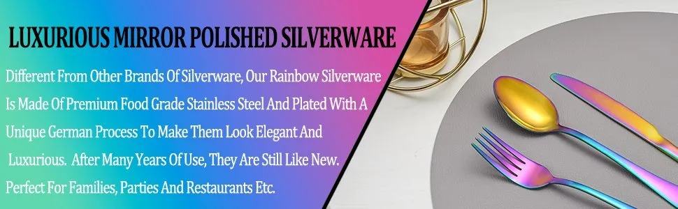 • 【UNIQUE RAINBOW LOOK】: The unique rainbow appearance stands out from ordinary silverware, which is more noble and elegant. The smooth surface and fine workmanship make it more luxurious, creating an elegant and luxurious dining atmosphere, which will impress your family and friends. There is no need to worry about fading or cracking, as this is a metal layer from vacuum plating technology. If you want to be different in tableware, you won’t miss it.
