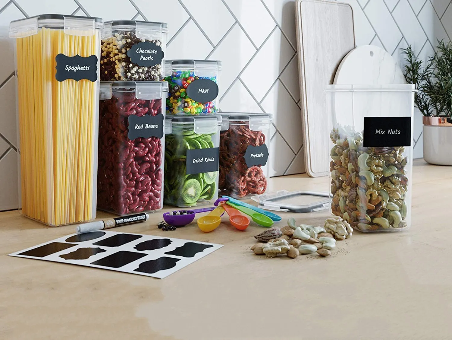 A good set of food storage containers can keep your food fresh longer and keep your pantry organized. The stackable design doesn’t take up your kitchen, allowing you to efficiently fit it into cabinets. The included labels and clear material help you easily distinguish between foods.