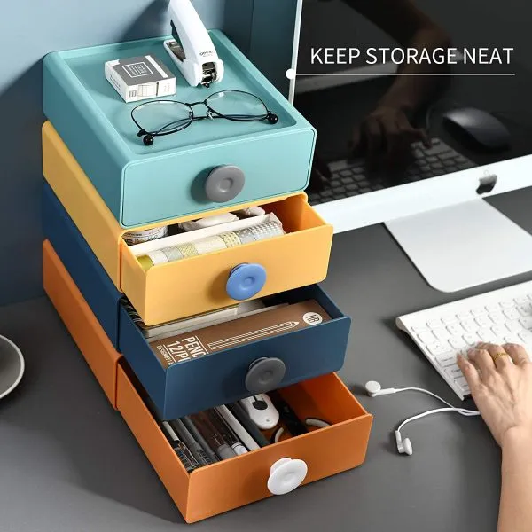Our Colorful Bulk Stackable Drawer has 4 independent drawer organizers, which can store stationery, art supplies, cosmetics, brushes, jewelry, accessories, office supplies, bathroom supplies, kitchen supplies, medical supplies, etc.
