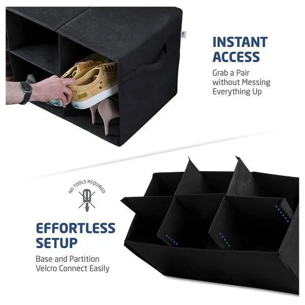 Ideally, Sized-The slots are super easy to access, allowing you to grab a pair without messing everything up. Each slot is 8.5×7 in, large enough to fit a men’s pair of shoes.