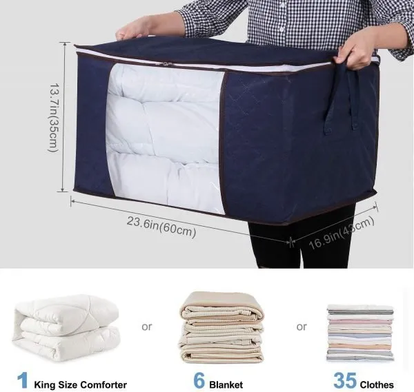 The large clothes storage bag organizer can be used to store and protect seasonal items, clothing, and household items. Use it for your comforters, blankets, pillows, stuffed animals, sweaters or other household items, and under-bed lockers; and find it quickly.