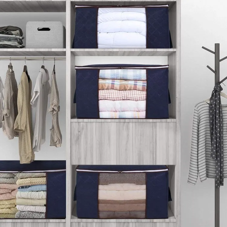 The compact design of the storage bag allows you to easily carry it between high or low shelves. When you need them, just remove the clothing storage bag from the closet.