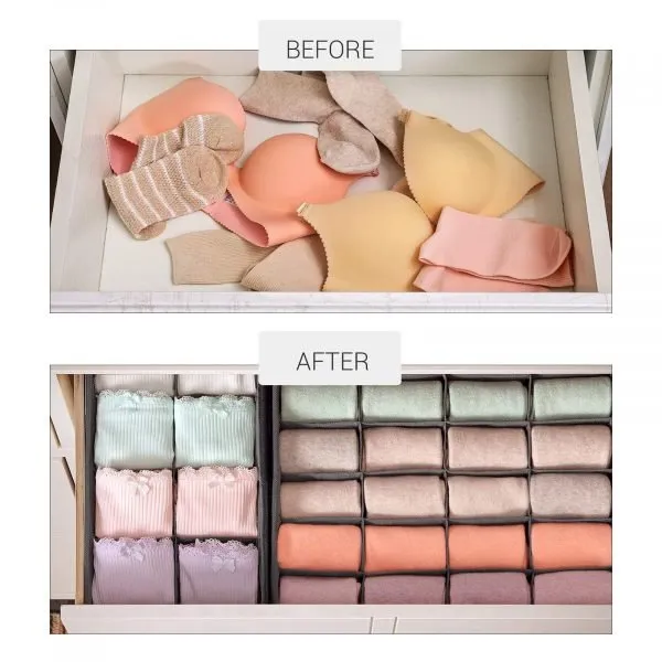TIME-SAVING STORAGE: Each underwear organizer is devided into small grids. Underware,socks,belts can be put into the storage bin. When you are looking for something, it’s easy to get them and no time wasted finding it through messy drawers.