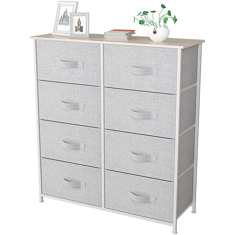 Metal Storage Drawers are built with a powerful metal frame, a durable MDF wooden top, and an innovative crossbar design on the back. Users can secure the dresser to the wall using screws. It has 8 removable drawers with easy-to-pull plastic handles, and it is held up by 4 adjustable plastic legs that prevent scratches to your floor. So it has a high quality.