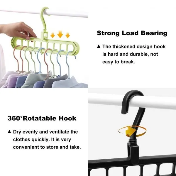 Space Saving: Closet organizers can save more space. When used vertically, a Multifunctional closet hanger can save space and keep the clothes neatly separated and wrinkle-free. There is 9 square holes design, making each piece of clothing ventilated at equal intervals without crowding.