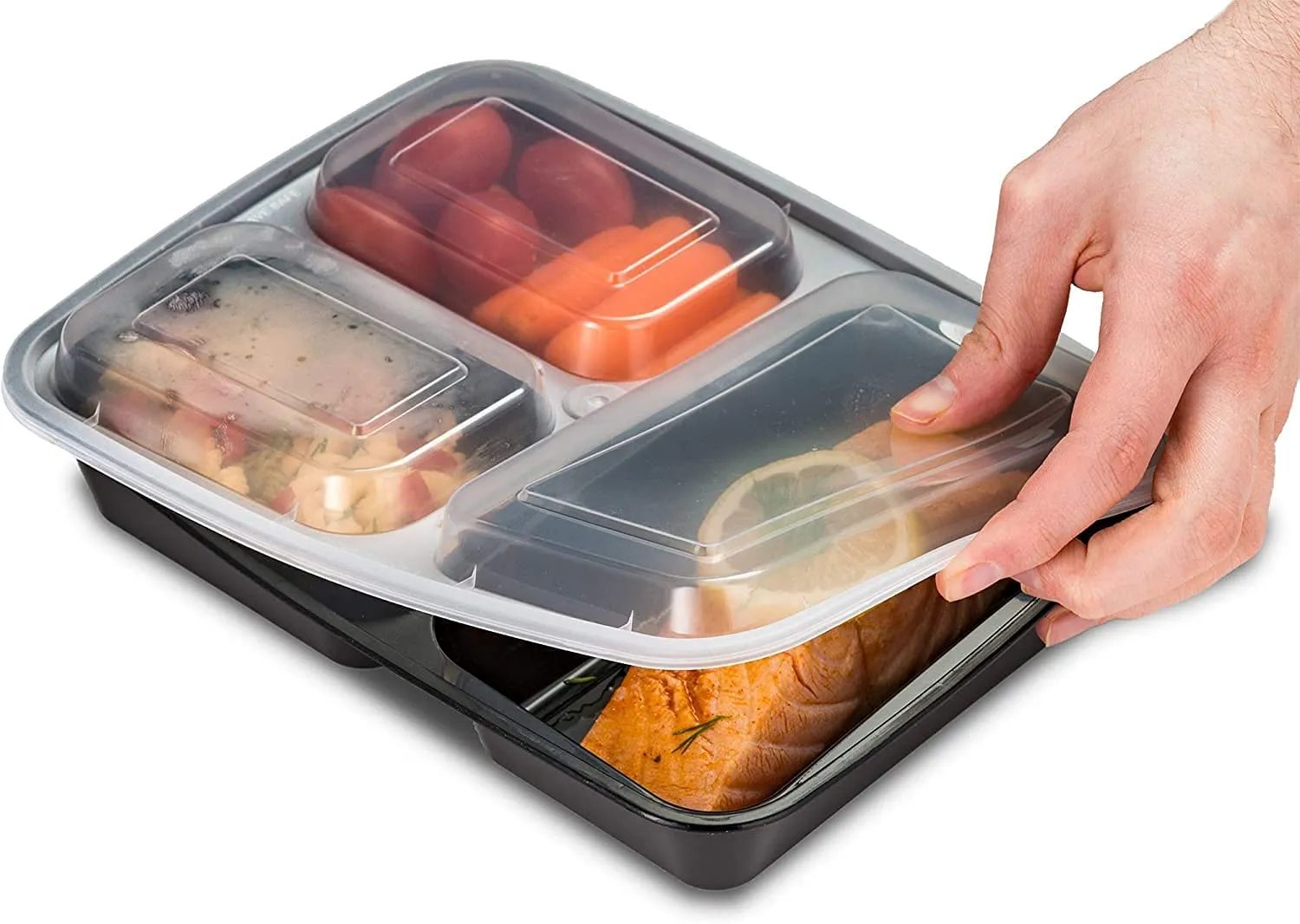 Easy to carry – Each meal prep container has a capacity of 32 ounces and 3 compartments, which can basically meet our needs for food size and variety.