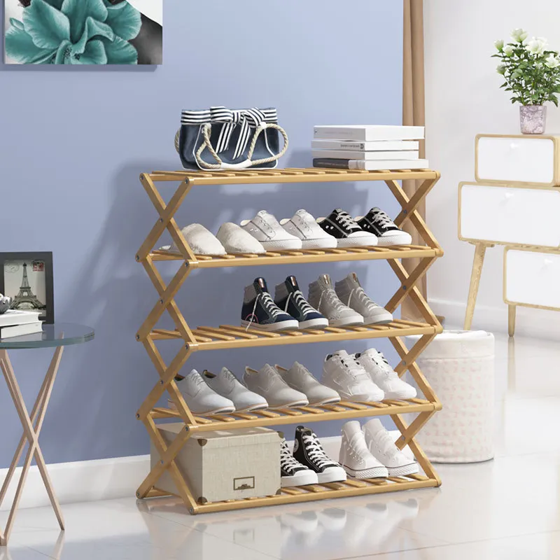 OEM 5 Layers Wood Collapsible Shoe Rack Supplier
