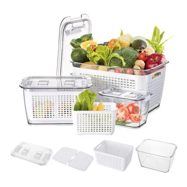 Plastic Produce Saver Containers are made of high-quality food-safe plastic and are very strong and durable. Easy to clean the . Great Plastic Produce Saver Container keeps your refrigerator looking neat and tidy.