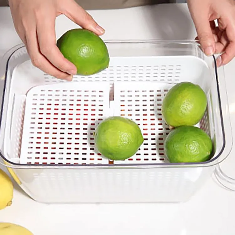 These Plastic Produce Saver Containers come with a strainer basket that you can use as a colander, and a distance from the bottom to separate water droplets from food.