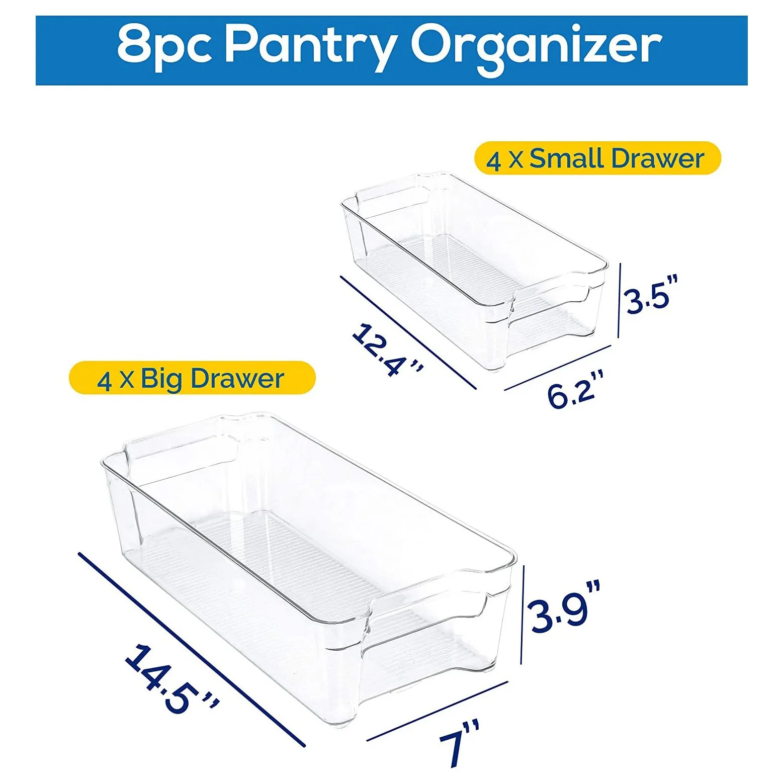 Extraordinary storage capacity – The drawers of refrigerator organizer bins are adequately large to oblige wares in great amount effectively; the set consolidates 4 major drawers and 4 more modest ones to guarantee better position of staple things.