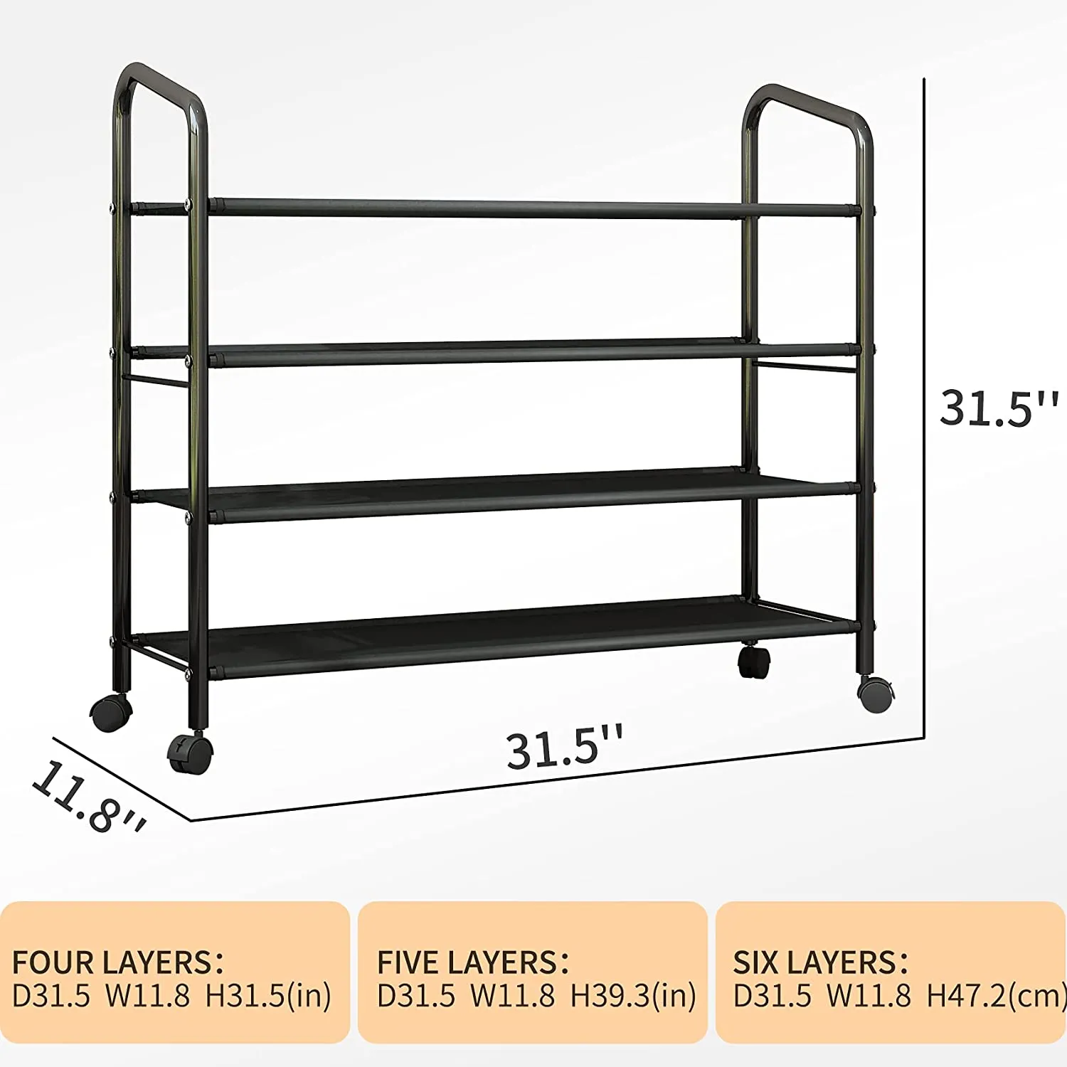 High shoe rack: 31.5 inches long × 11.8 inches wide × 31.5 inches high, multi-layer shoe rack can accommodate 16-20 pairs of men’s and women’s shoes, and the shoe rack height can be easily adjusted to accommodate shoes of different sizes. Even high boots can be stored easilyShoe Rack Cart manufacturer
