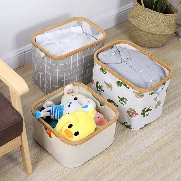 Type: Wholesale Clothes Storage Basket Use Bamboo And Cloth With Many Kinds Of Patterns