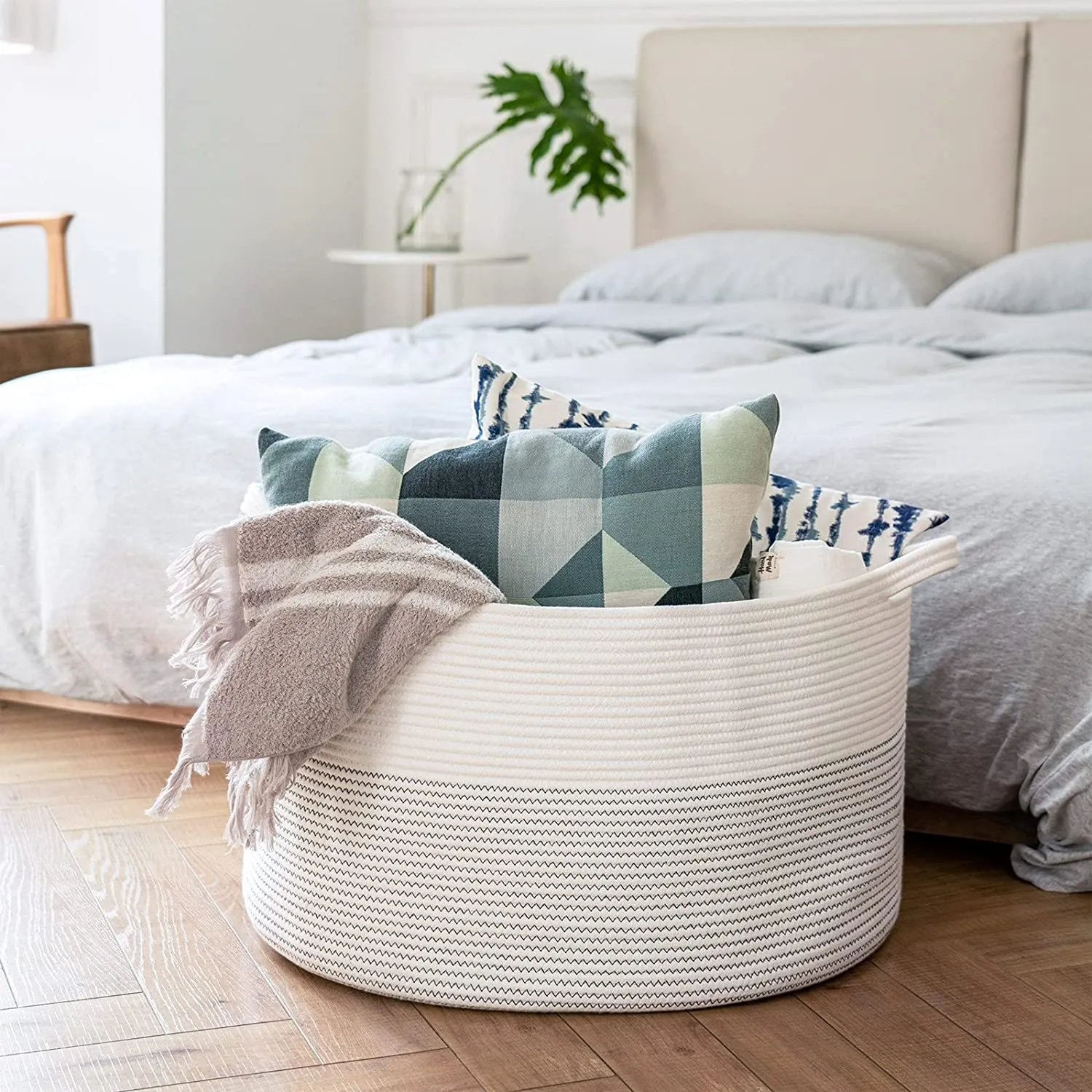 Handles plan, foldable, simple to move and remove, wonderfully reasonable cotton rope basket. Delicate yet strong enough to stand up all alone.