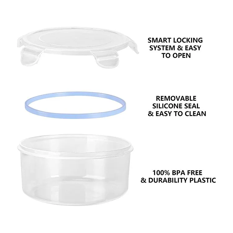 Sealing and Leak-Proof: The snap-lock system and silicone on the lid of the Plastic Food Storage Container make the container airtight, splash- and leak-proof, allowing Plastic Food Storage Container to extend the shelf life of food.