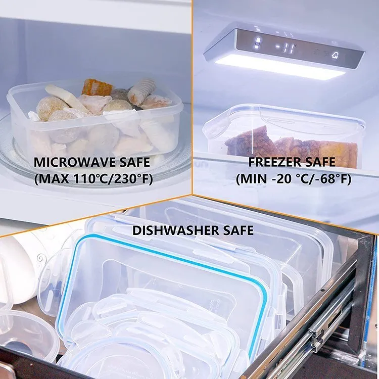 High quality material: Plastic Food Container is made of sturdy PP plastic material, 100% BPA free plastic, can withstand temperatures from -68℉ to 230℉. So the product can be suitable for dishwashers and microwave ovens.