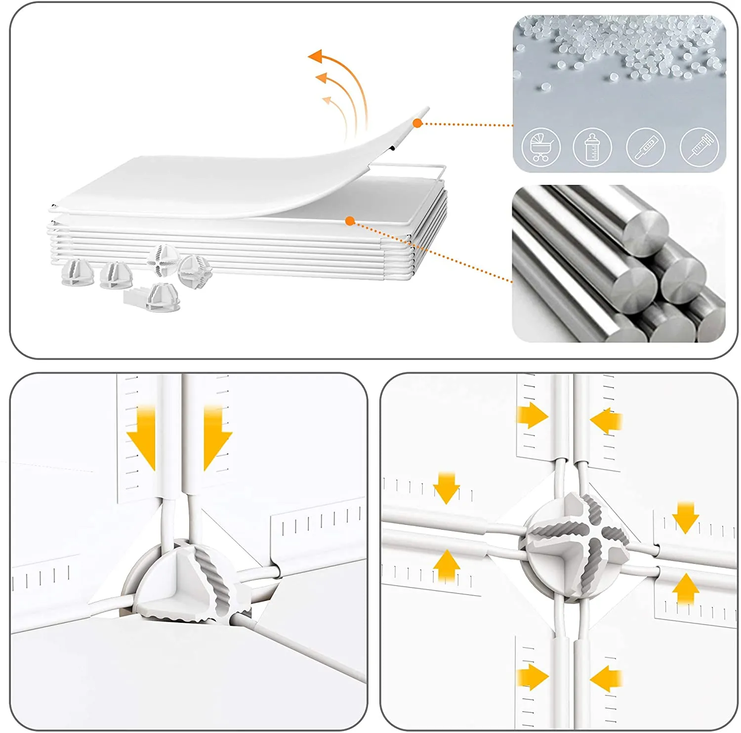Ultra Big Capacity & Bearing Ability: One protable shoe storage organzier rack can fit about 16 – 32 pairs of adult shoes depending on the number of cubes. Each cube can hold up to 10 kg of weight at one time.