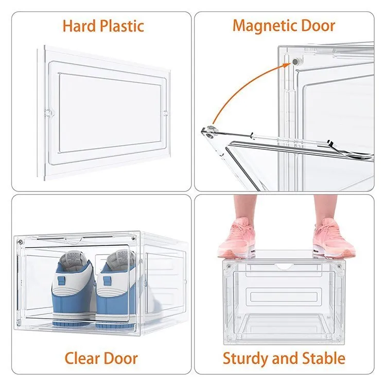 【Sturdy and stable】Our shoe storage box body is made of heavy duty plastic, and the door is made of high transparent acrylic, which is more sturdy and stable.