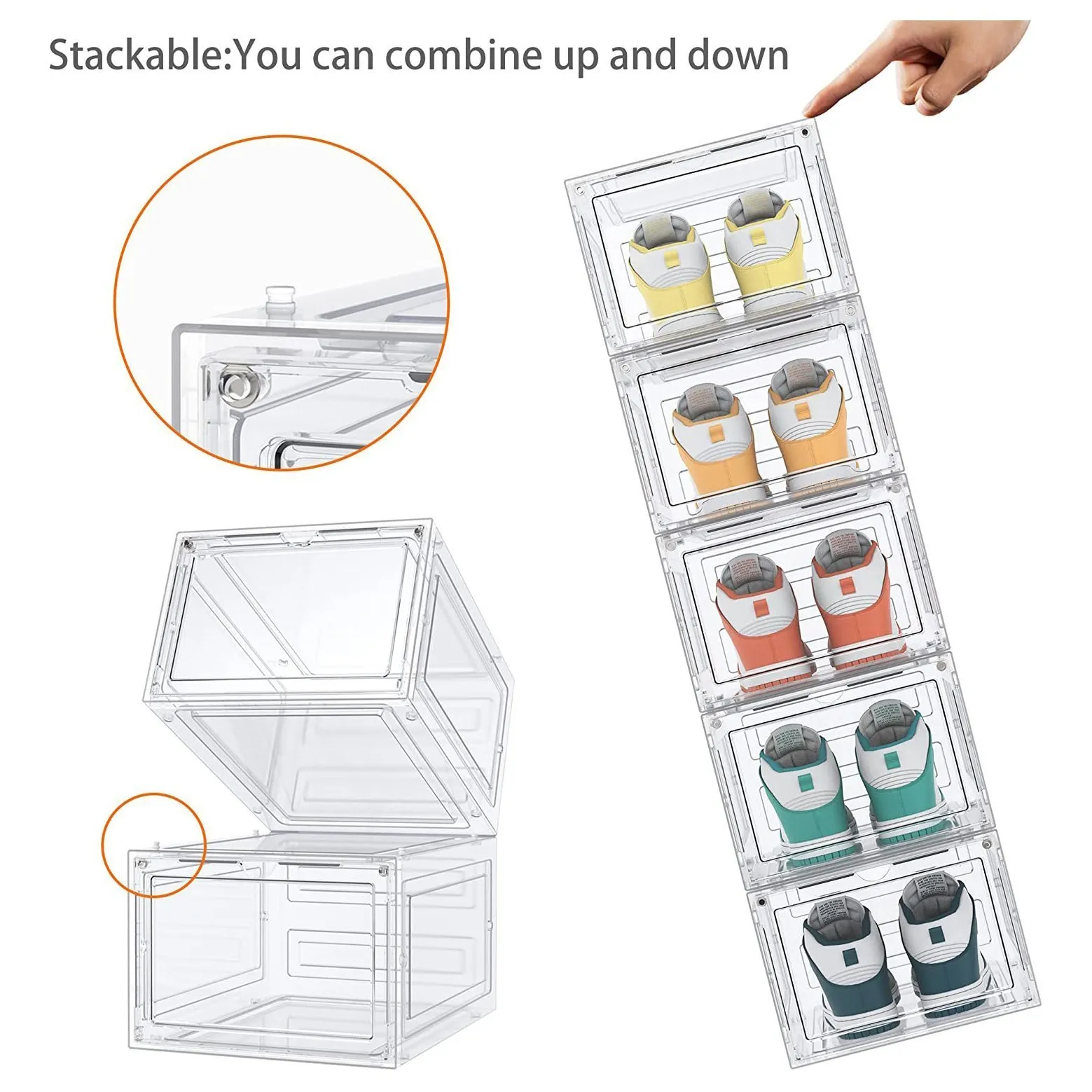 【Magnetic Door】Our shoe storage box is made with upgraded magnets, which provide suction when the door is closed, perfect for protecting your shoes.
