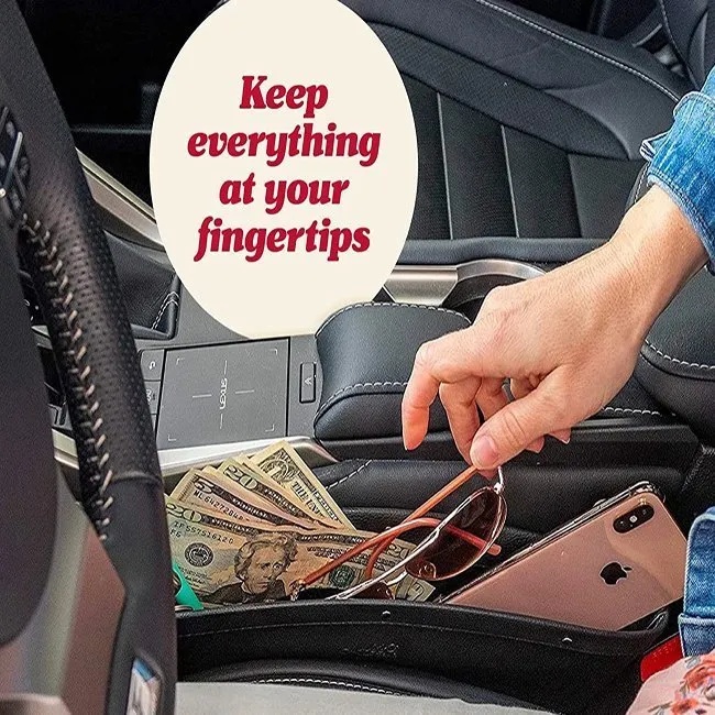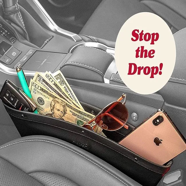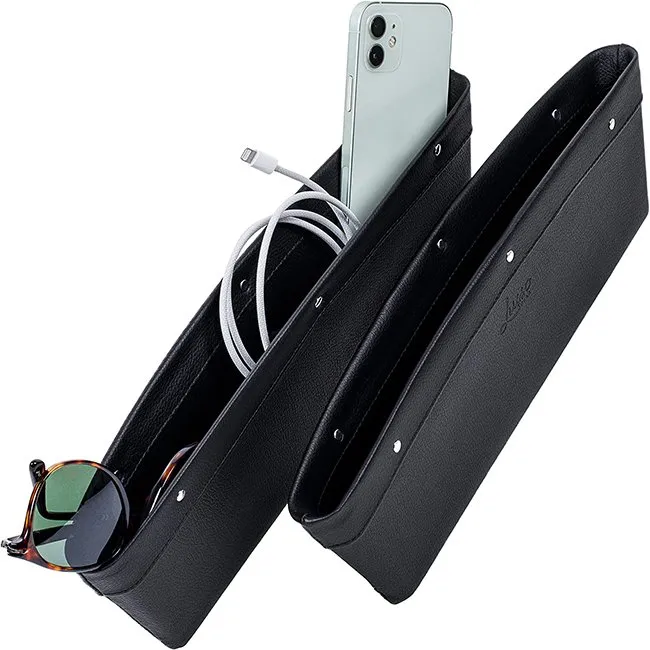 For a safer driving experience, these sturdy Leather Car Gap Organizer pocket keep phones, keys, glasses, change, and other clutter out of your console and cup holders.
